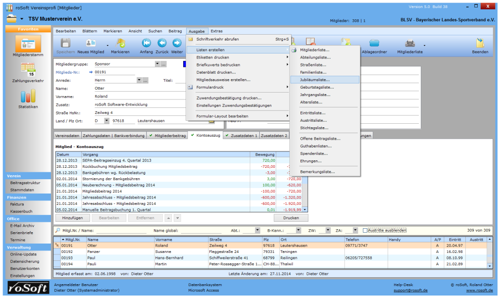 Aus diesem Grund haben wir Ihnen hier eine kleine Bilder-Galerie vorbereitet, aus denen Sie sicherlich schon die ein oder andere interessante und für Sie wichtige Information über den Leistungsumfang von roSoft Vereinsprofi 5.2 entnehmen können.
